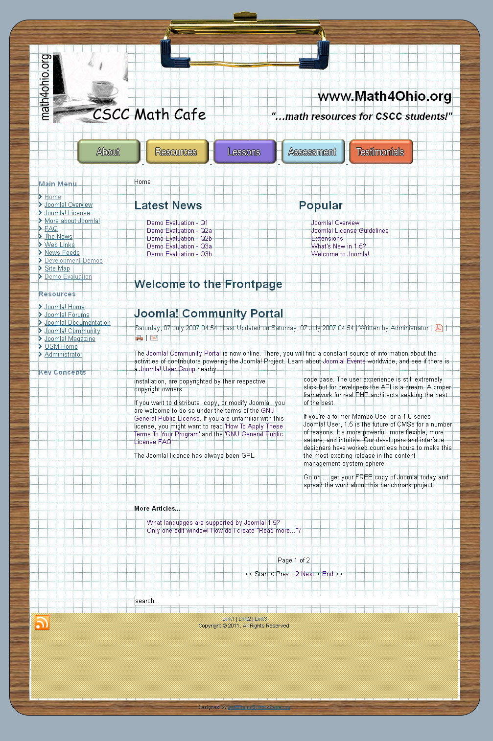 Math 4 Ohio was a Joomla site that provided privately tutored students with self-study lessons, placement assessment testing, and online course testing. Building an online school is not a new concept, however this project took a brand new approach to its theme.
